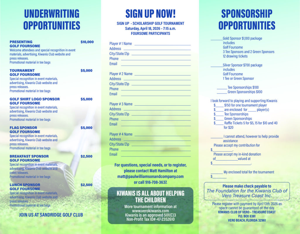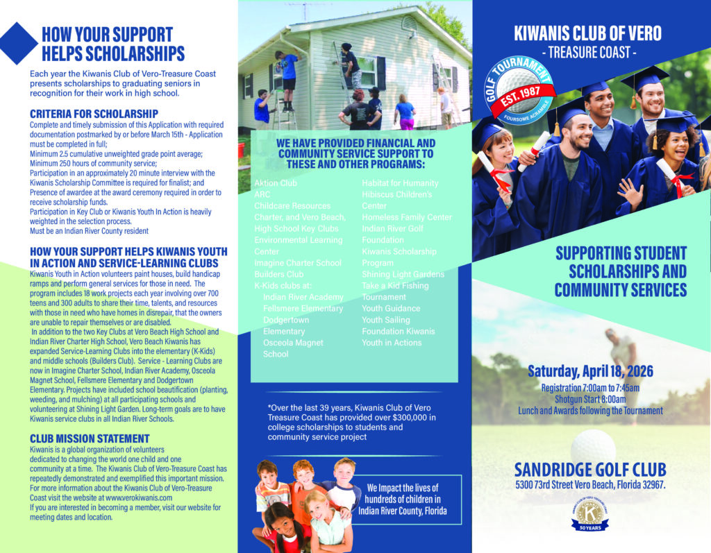 For over five decades, the Kiwanis Club in Vero Beach has been tirelessly working to create positive impacts for the youth of Indian River County. Through initiatives like Youth in Action projects, volunteer programs in IRC schools (Key Club, Builders Club) and the Scholarship Golf Day, the club continues to raise vital funds that directly benefit children’s education, health, and well-being.